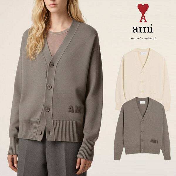 ami❣️아미 가디건 최초❤️19만원대! 남녀공용✨명품 AMI 자수 코튼 울 가디건 (색상: 아이보리, 카키 / 사이즈 XS~ XL / 남녀공용 / 미국 프리미엄 아울렛✨매장 병행
