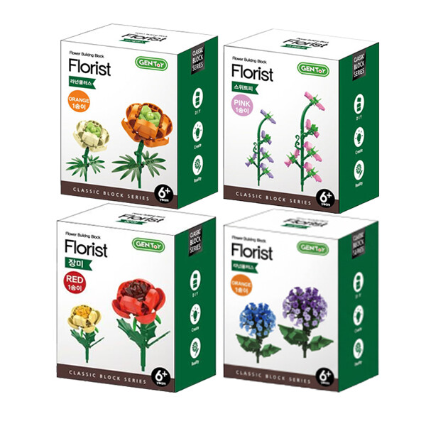[1+1+1+1] 레고꽃 4종 최초❤️3천원대! 레고꽃 신드롬✨젠토이 꽃블럭 플라워 4종 (1개당 975원꼴! / ✔️레고호환 ‘레고꽃’ 젠토이 플라워 블럭 / 장미+수국+라넌쿨러