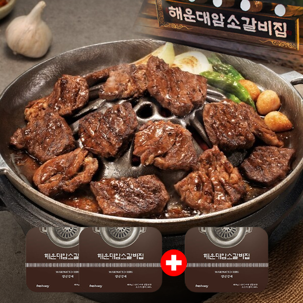 해운대 갈비 2+1 최초❤️5만원대! 총 1.2kg ✨특제양념 소갈비 총 6인분 (✨1인분에 9,833원꼴! / [400g,2인분] x 총 3팩 / ❣️60년 전통 비법 양념 /