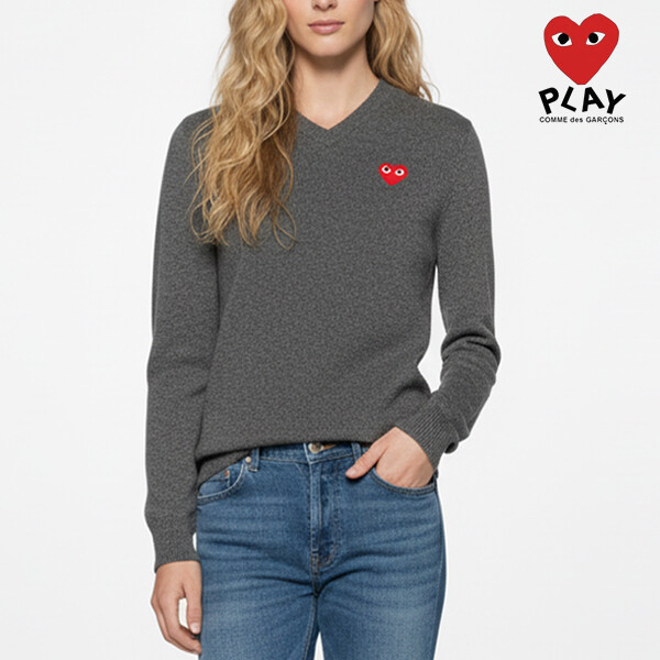 꼼데가르송 니트 최초❤️10만원대! 간절기추천!✨하트 와펜❣️브이넥 니트 (✔️색상 : 블랙, 그레이 / ✨100% 울 소재 / ✔️사이즈 : S~2XL / 남여공용 / ⭕일본 병